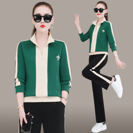 休闲运动服套装女士2023春秋季新款时尚减龄气质外套阔腿裤两件套