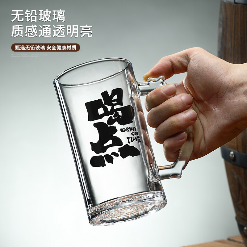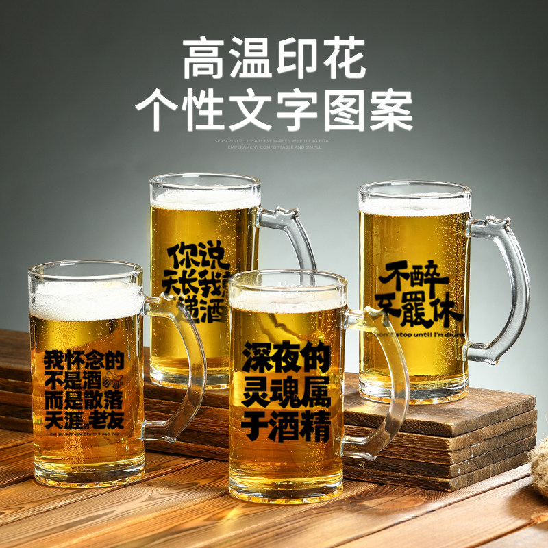 2025新款网红文案啤酒杯带把手图案扎啤酒杯大容量精酿啤酒杯商用