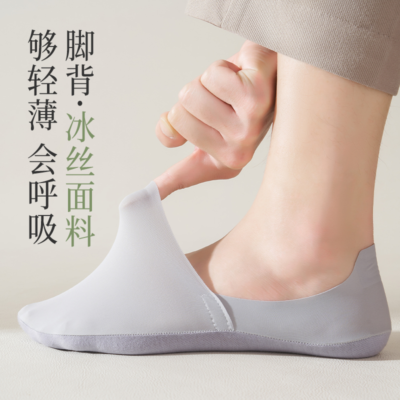 冰丝船袜男夏季薄款毛圈底吸汗男士防臭简约商务不掉跟浅口短袜子