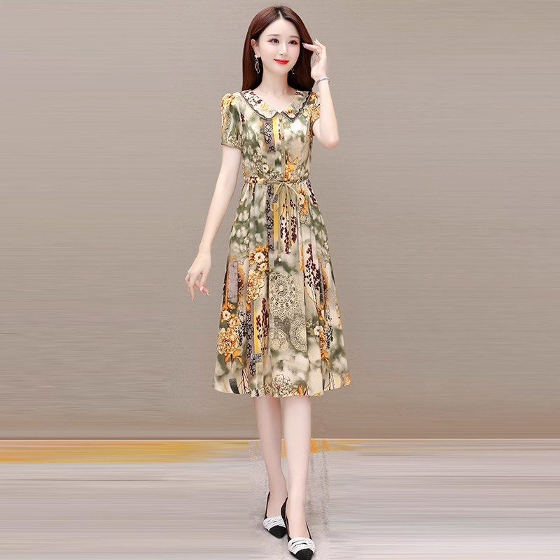 改良低领旗袍雪纺连衣裙女2025新款夏年轻气质高端碎花广州十三行