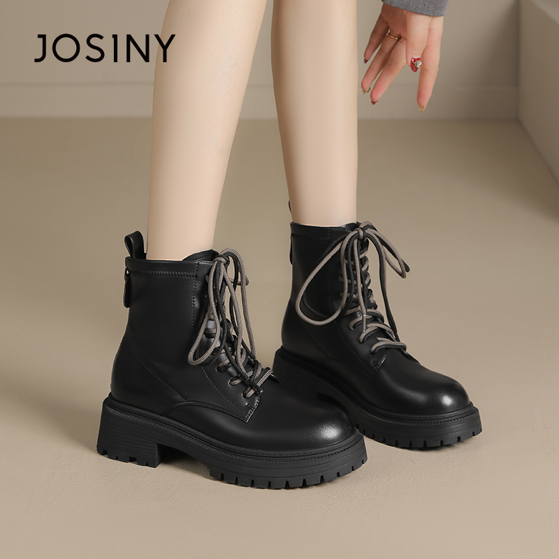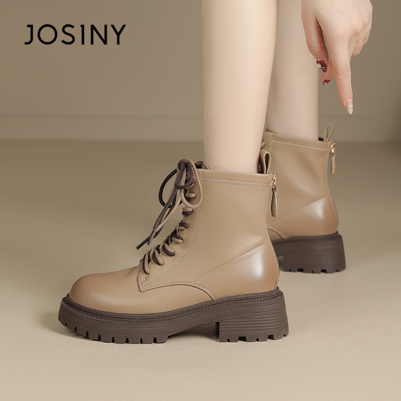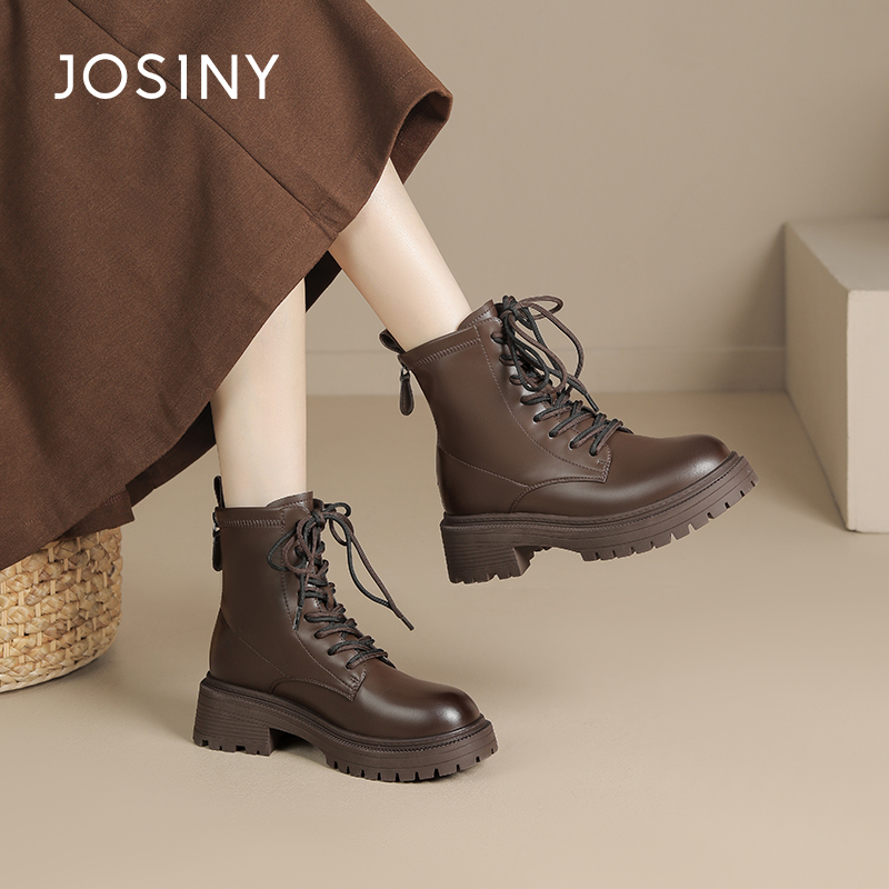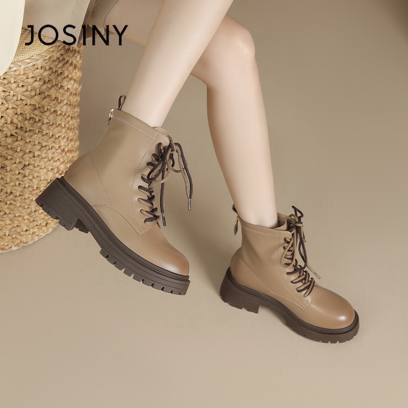 卓诗尼女鞋秋冬撤柜正品复古撞色马丁靴鞋带后拉链圆头厚底百搭潮