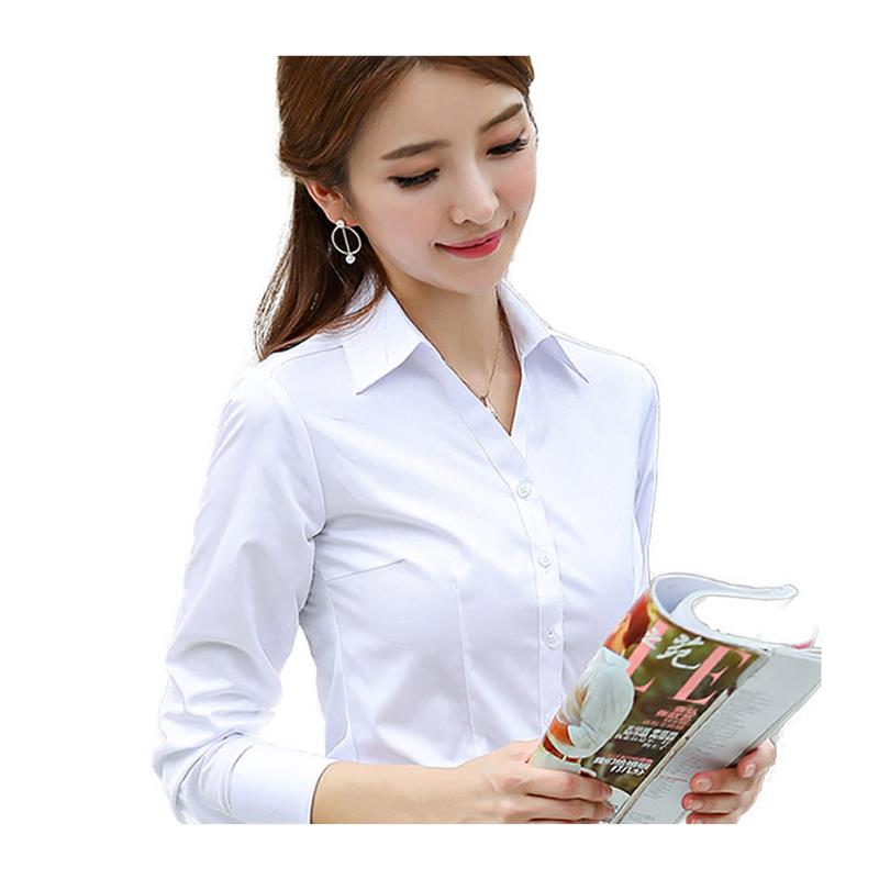 白衬衫女职业长袖V领大码工作服2023春季新款工装正装气质衬衣寸