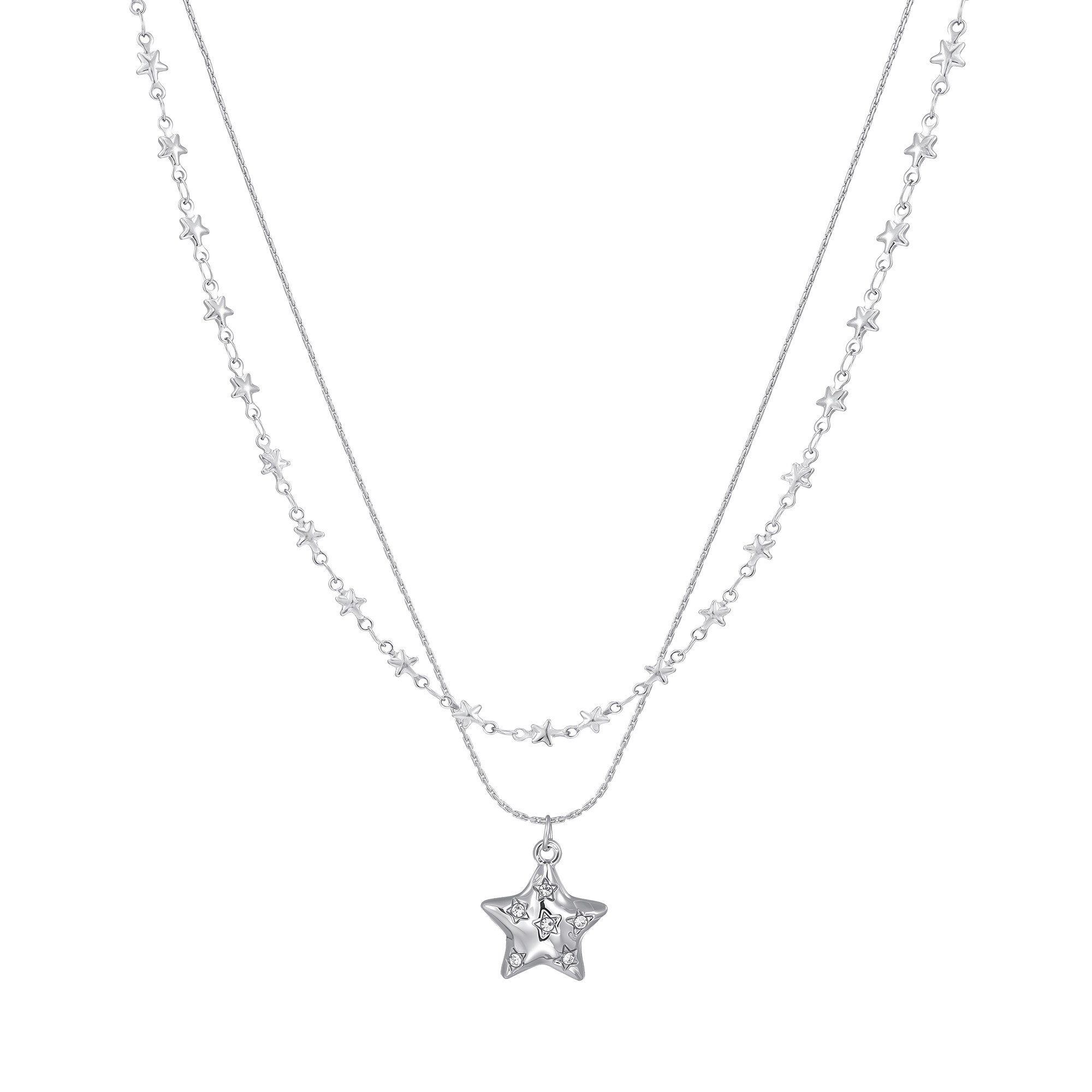 双层叠戴星星吊坠项链女满天星钛钢锁骨链轻奢小众毛衣链秋冬配饰