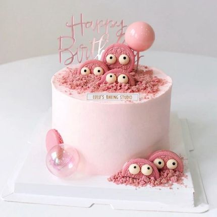 粉色饼干万圣节搞怪甜品蛋糕装饰