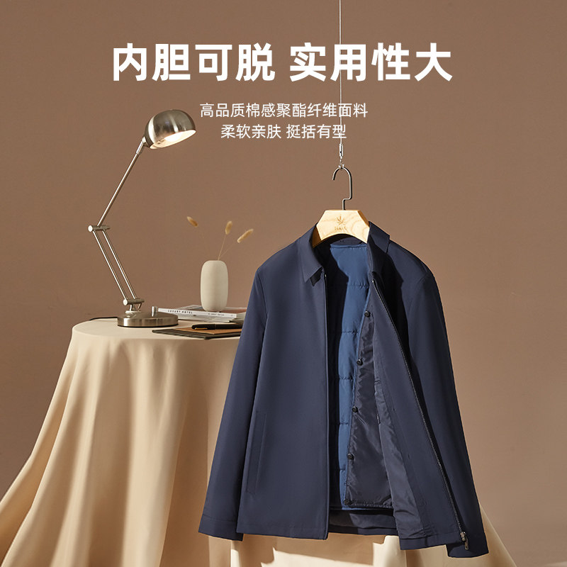 雅戈尔翻领棉衣夹克可拆卸内胆
