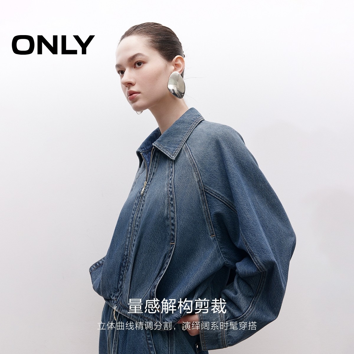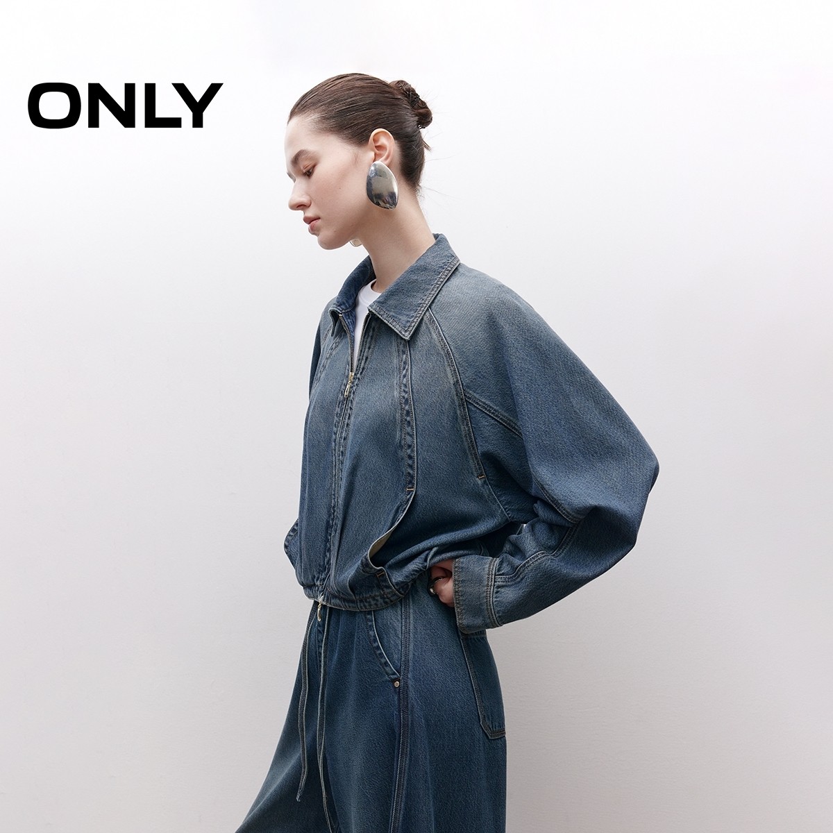 ONLY2025冬季新款时髦宽松自在插肩袖翻领渐变水洗牛仔外套女