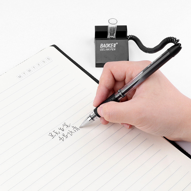 宝克850 台式水笔 带笔座中性水笔 银行 前台专用台笔带线碳素笔