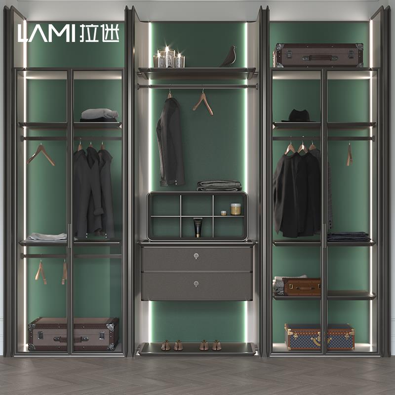拉迷全屋定制家具卧室金属玻璃衣柜钢架整体衣帽间玻璃门柜子定做