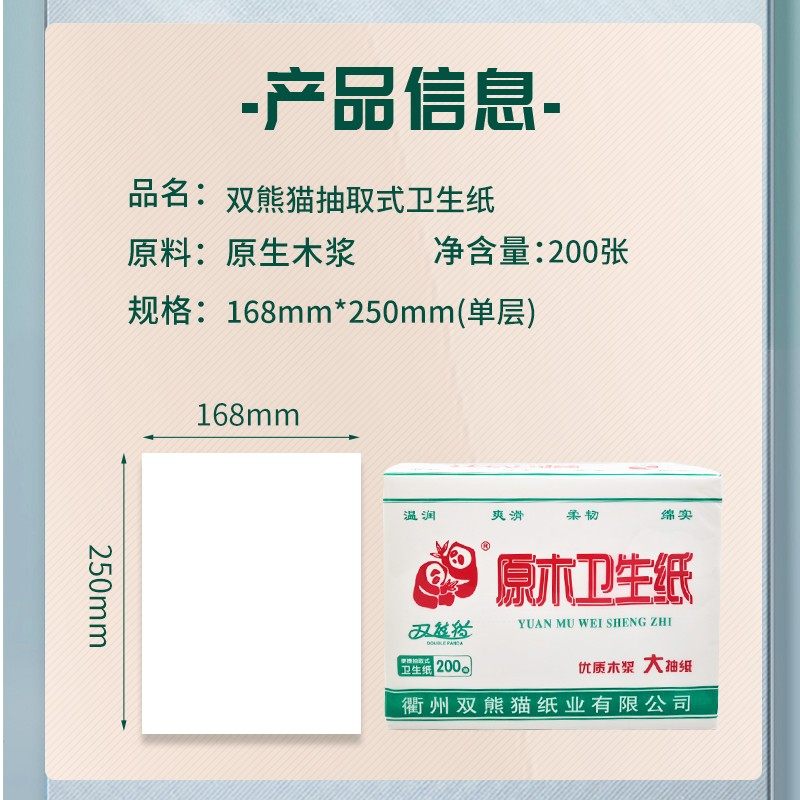 双熊猫卫生纸200抽平板厕纸草纸手纸刀纸实惠抽取木浆原生原木