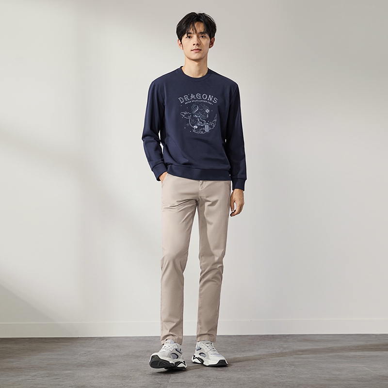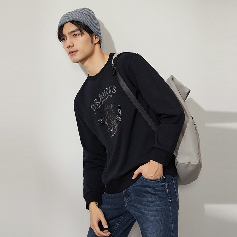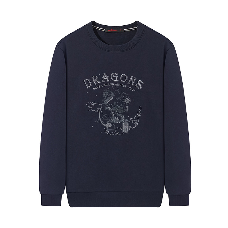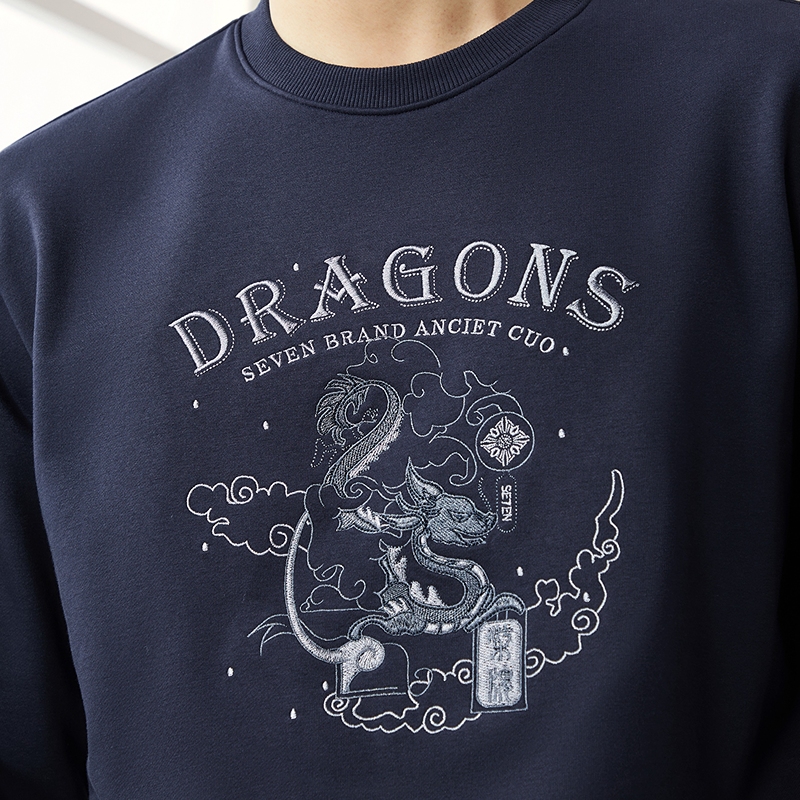 【保型索罗纳】柒牌刺绣圆领卫衣男舒适新款宽松休闲套头上衣