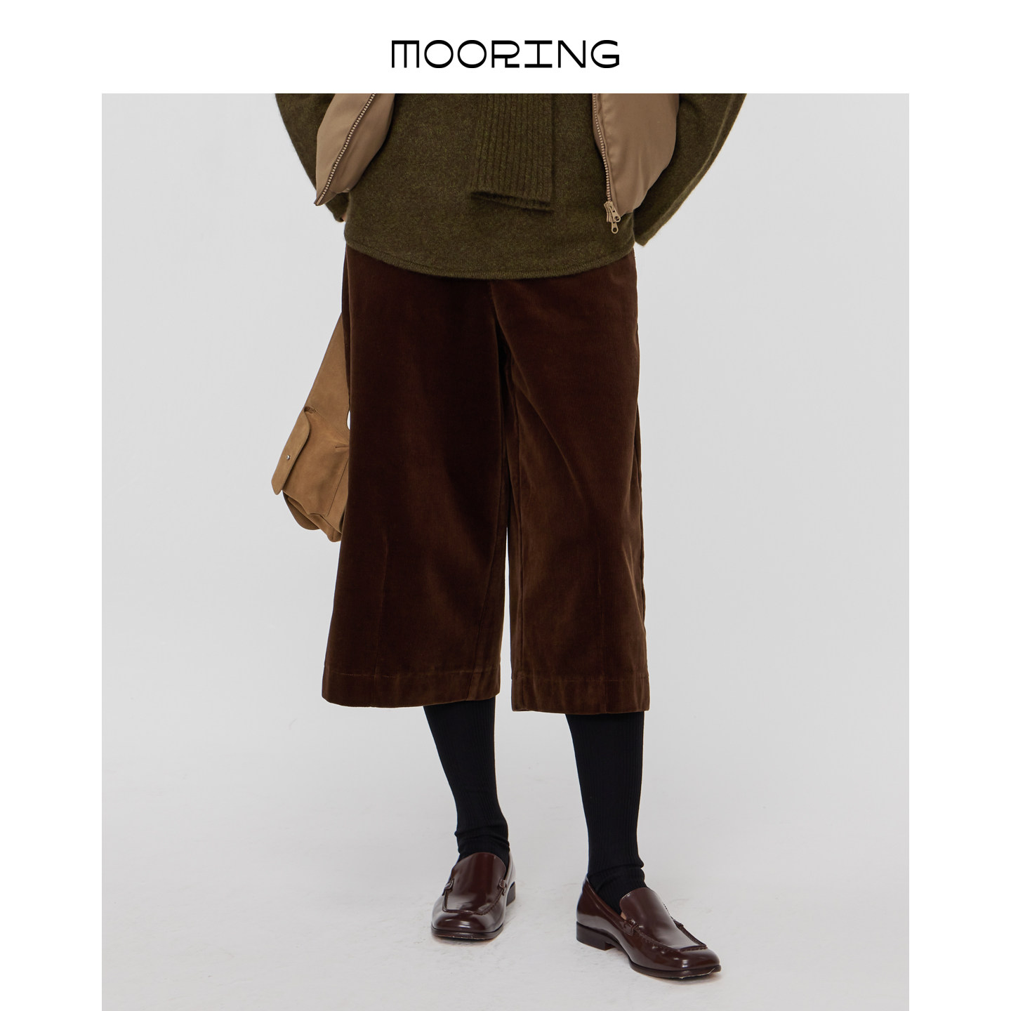 MOORING泊复古灯芯绒七分裤阔腿裤高腰秋冬直筒裤小个子裤子穿搭
