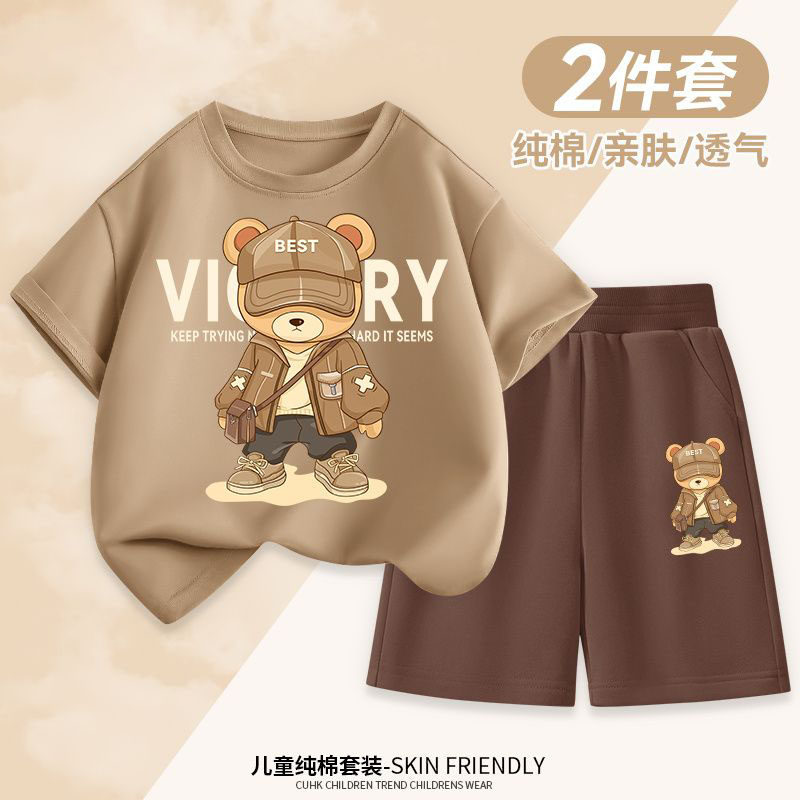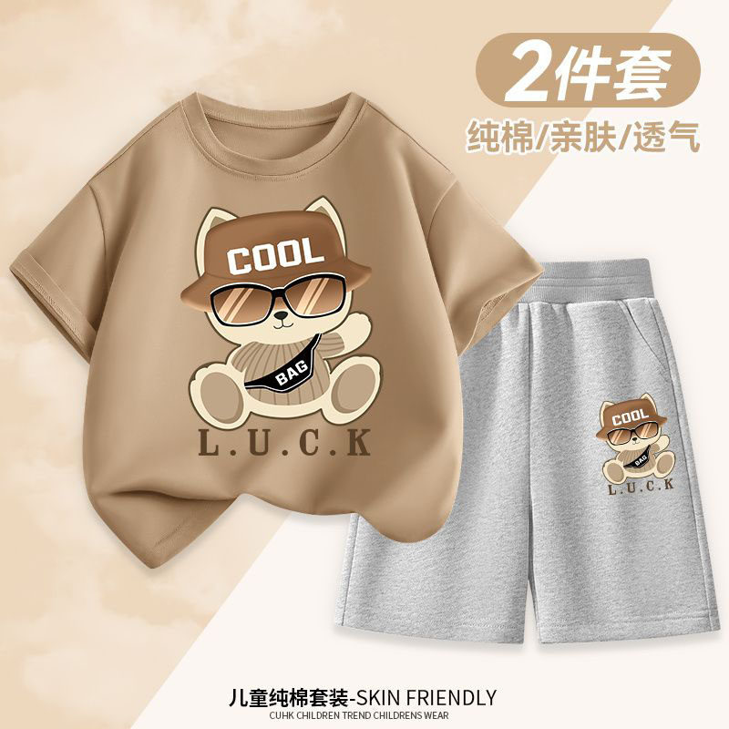 夏季新款纯棉短袖套装男童潮酷休闲短裤运动服薄款两件套儿童衣服