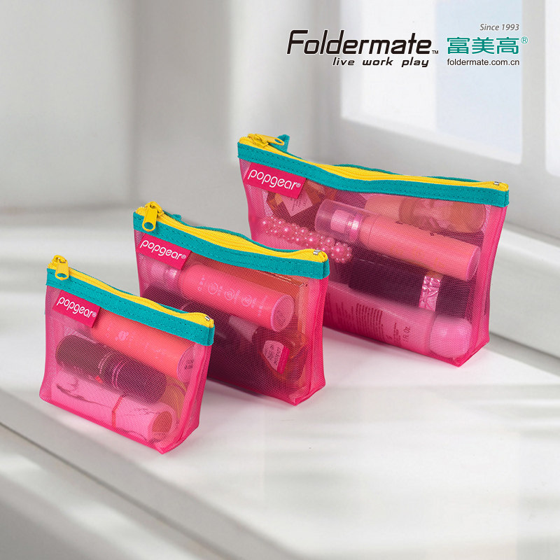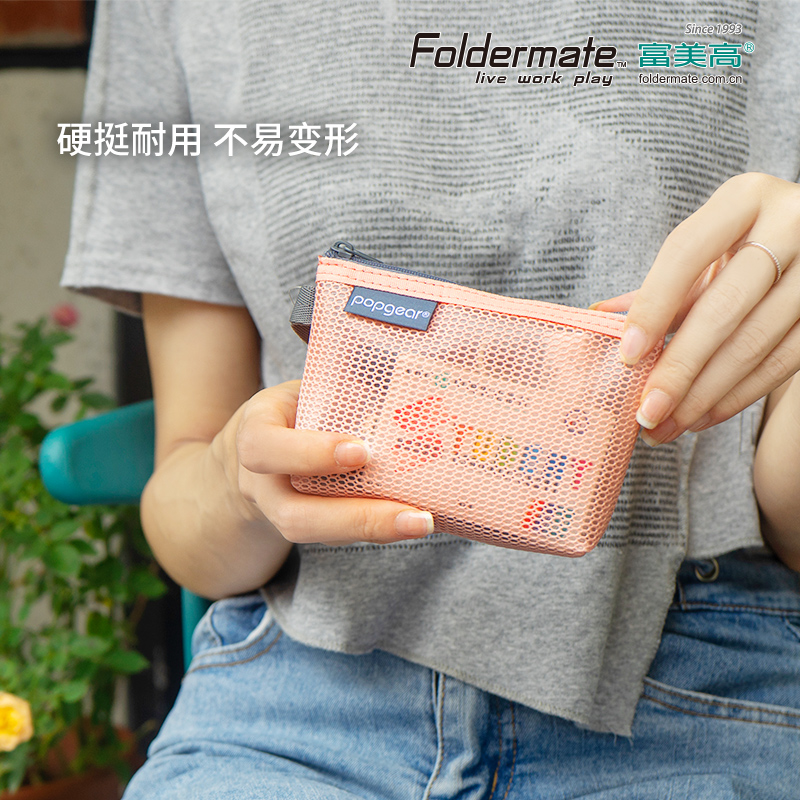 富美高Foldermate杂物包收纳袋轻生活系列网纹撞色钥匙包卡包零钱袋811半透明零钱包杂物袋三角包