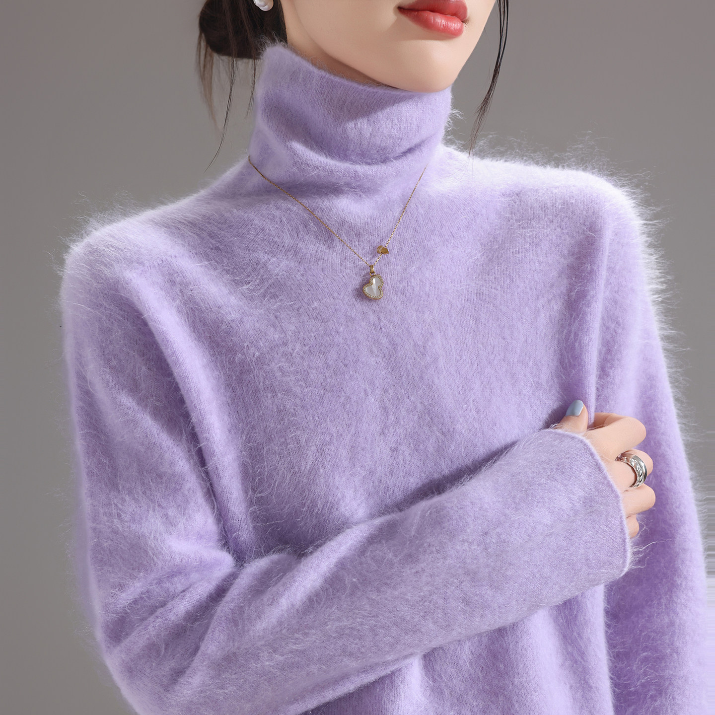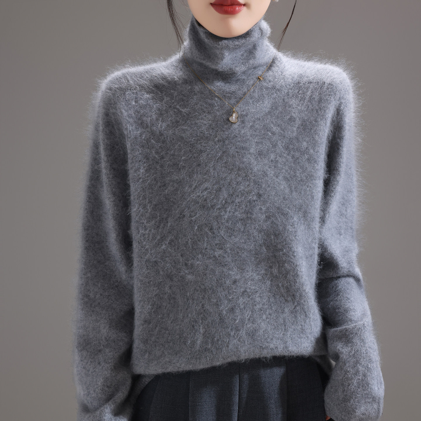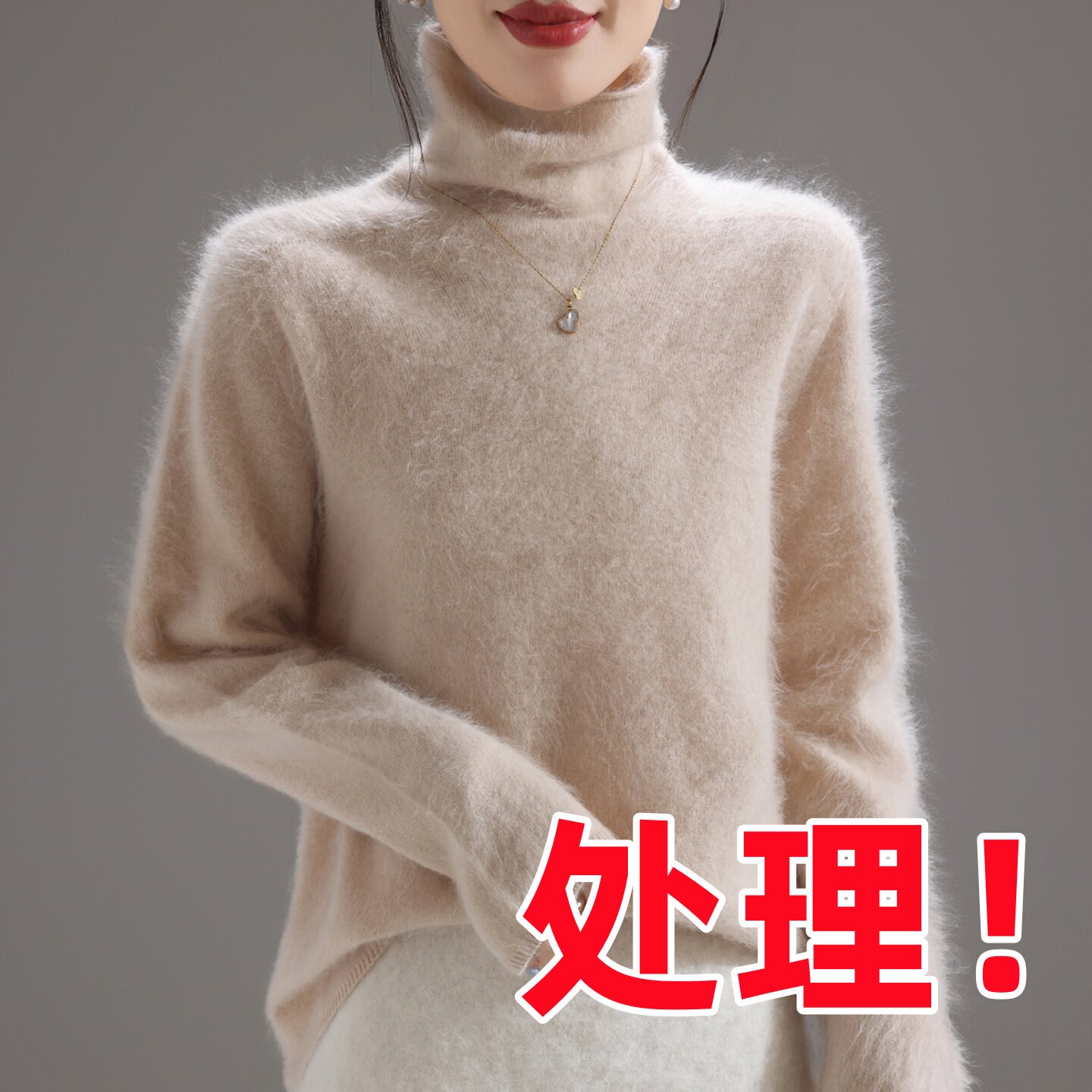 堆堆领拉毛羊毛衫女100纯羊毛针织衫高领套头长袖线衣线衫打底衫