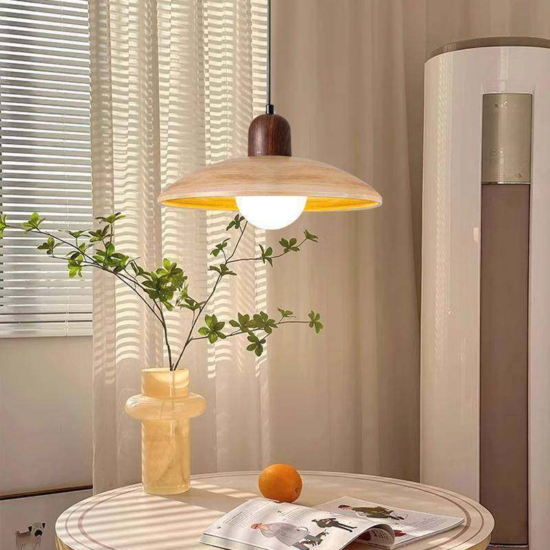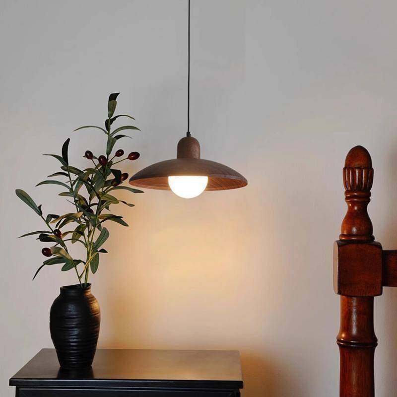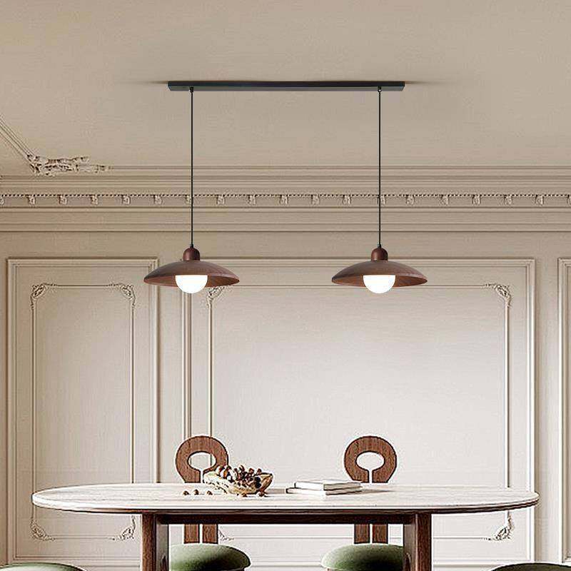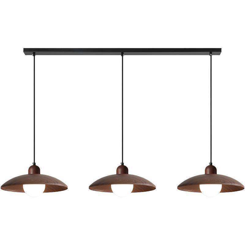 中古侘寂风餐厅灯复古胡桃色三头飞盘吧台吊灯新中式禅意茶室灯具