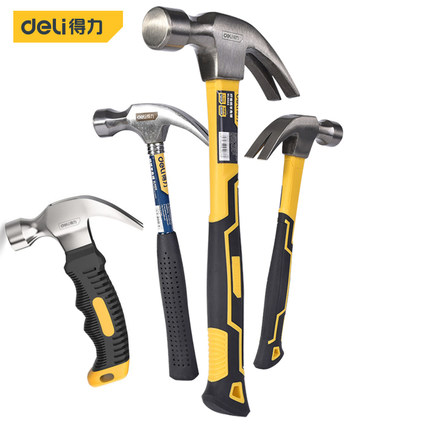 得力羊角锤家用多功能铁锤木柄榔头木工锤子钉锤短柄迷你小号工具