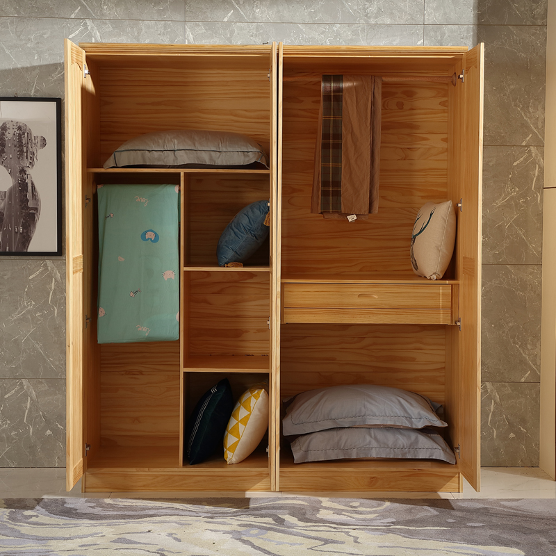 掌上明珠厂家直销实木环保新西兰松木卧室四门衣柜实木松木衣橱开