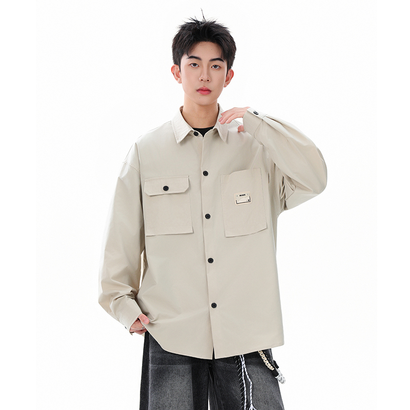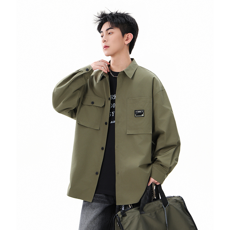 2025秋季新款长袖衬衫时尚舒适宽松休闲帅气工装男士衬衣