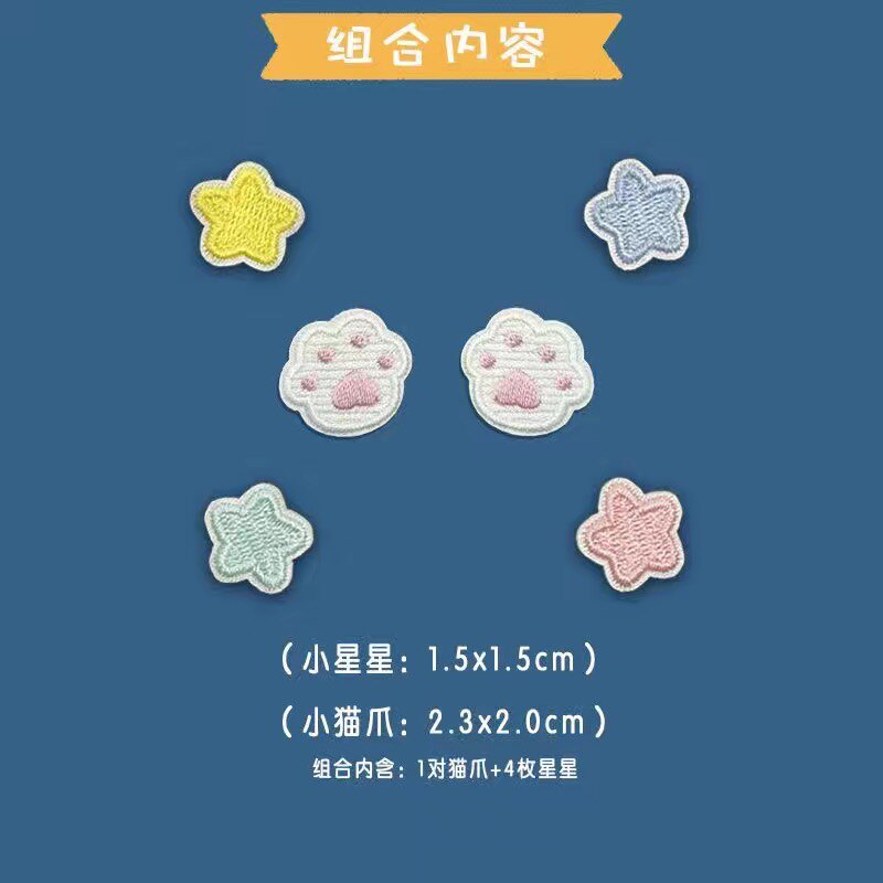 迷你时尚卡通猫爪流星翅膀爱心花朵星星衣服书包鞋子刺绣自粘布贴