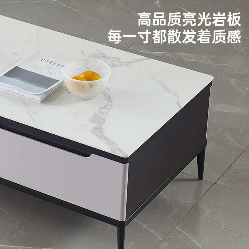 双虎家私 岩板茶几简约现代家用大理石纹小户型客厅电视柜组