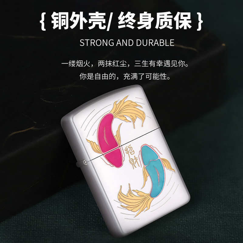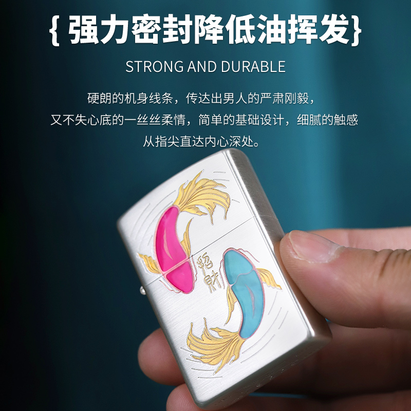 ZORRO佐罗官方旗舰店煤油打火机防风银拉丝招财锦鲤送男友礼物