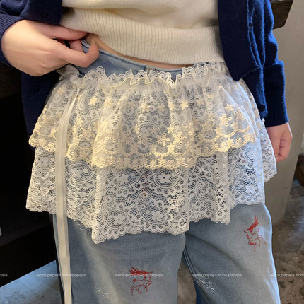 2026新款白色蕾丝花边屁帘女叠穿高级感打底衫半身裙牛仔裤遮臀裙