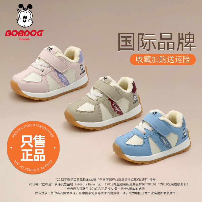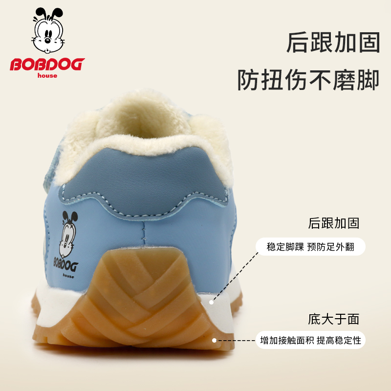 巴布豆学步鞋子2025冬季加绒加厚小童机能鞋防滑保暖男女宝宝棉鞋