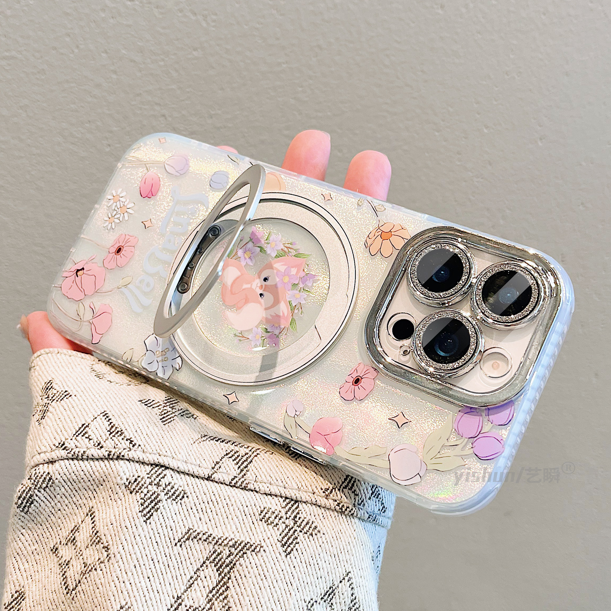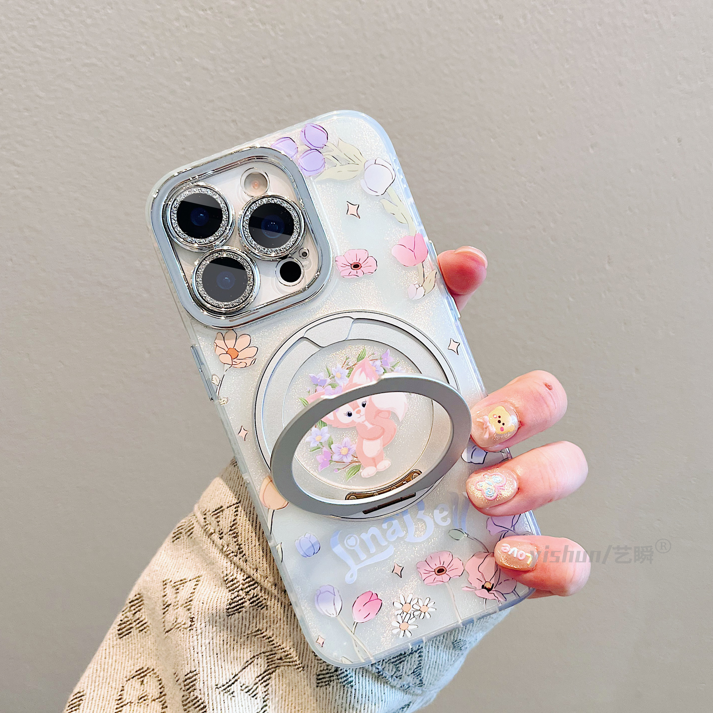 花园玲娜贝儿适用苹果17/16promax手机壳新款360旋转支架15pro磁吸支点壳iPhone14plus镜头全包13女款保护套