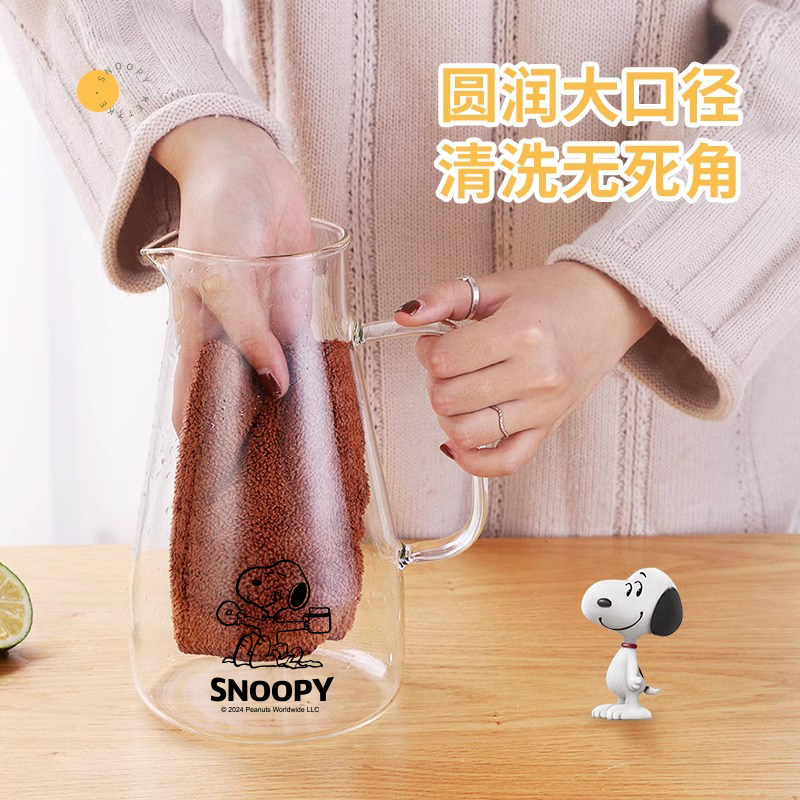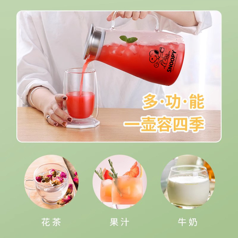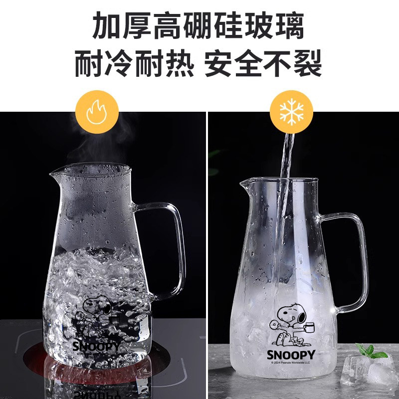 史努比冷水壶家用耐高温高硼硅玻璃夏天大容量水杯耐冷耐热凉水壶