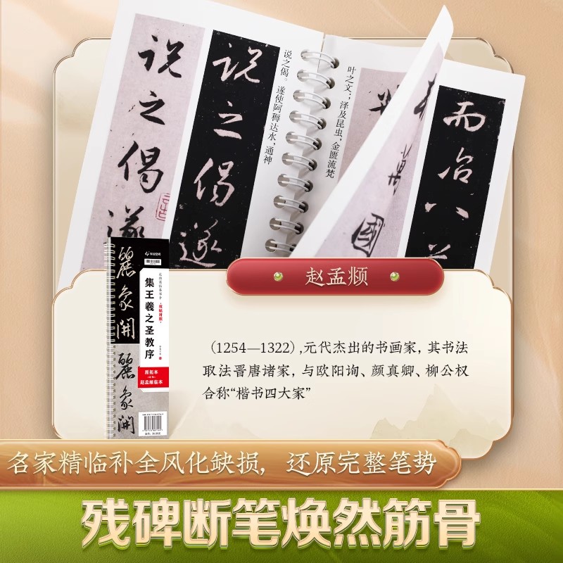 集王羲之圣教序双帖对照版 原拓本+赵孟頫临本 怀仁集王羲之圣教序墨迹本华夏万卷近距离临摹字卡行书毛笔字帖初学者放大版