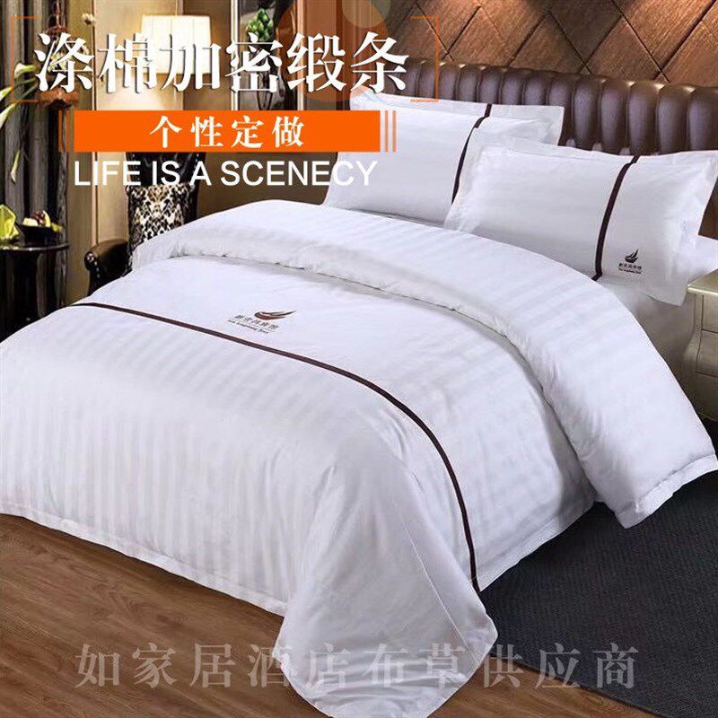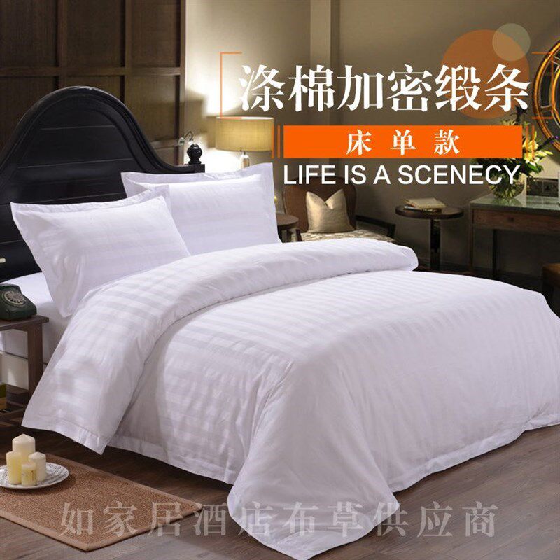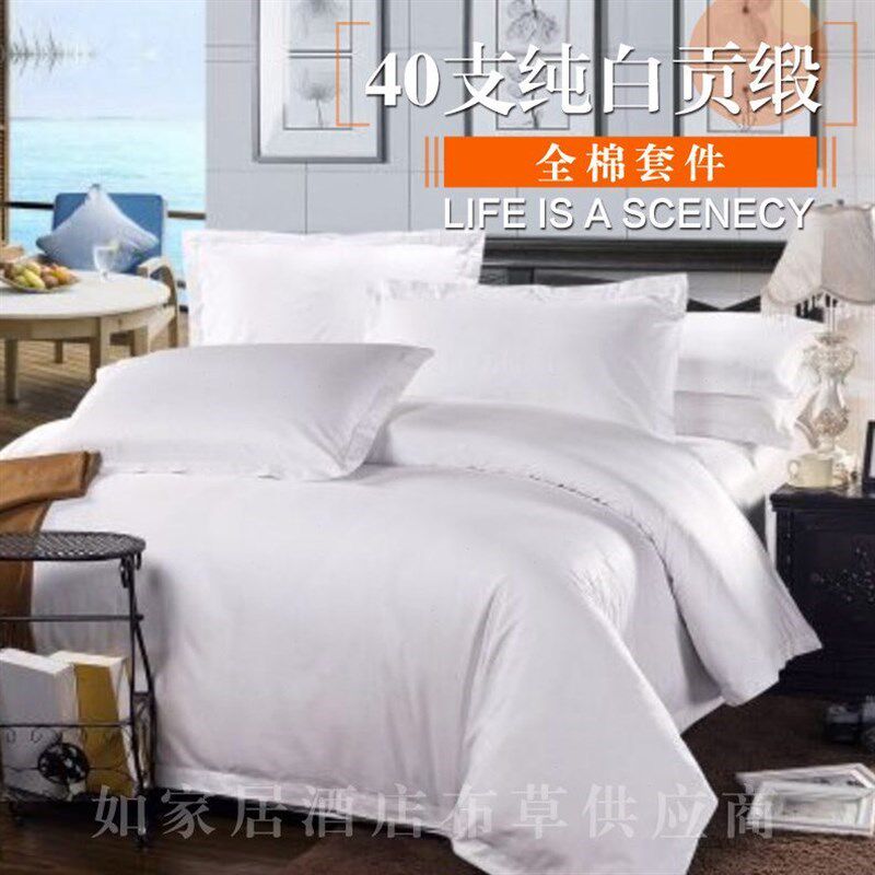 宾馆四件套酒店床上用品 全yz棉民宿旅馆三件套纯白色床单被套