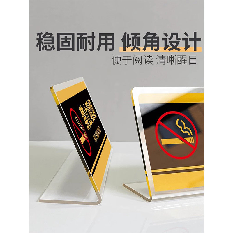 亚克力标识牌提示立牌定制禁止请勿吸烟桌牌禁烟警示台牌广告牌台卡展示牌台签摆台温馨桌面立式告示牌子定做