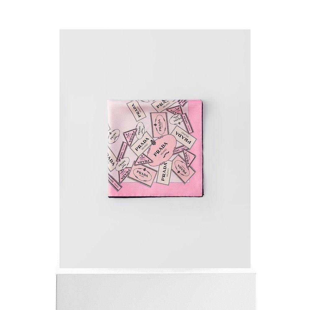 欧洲直邮PRADA (2025) 印花斜纹真丝围巾 55 X 55方巾