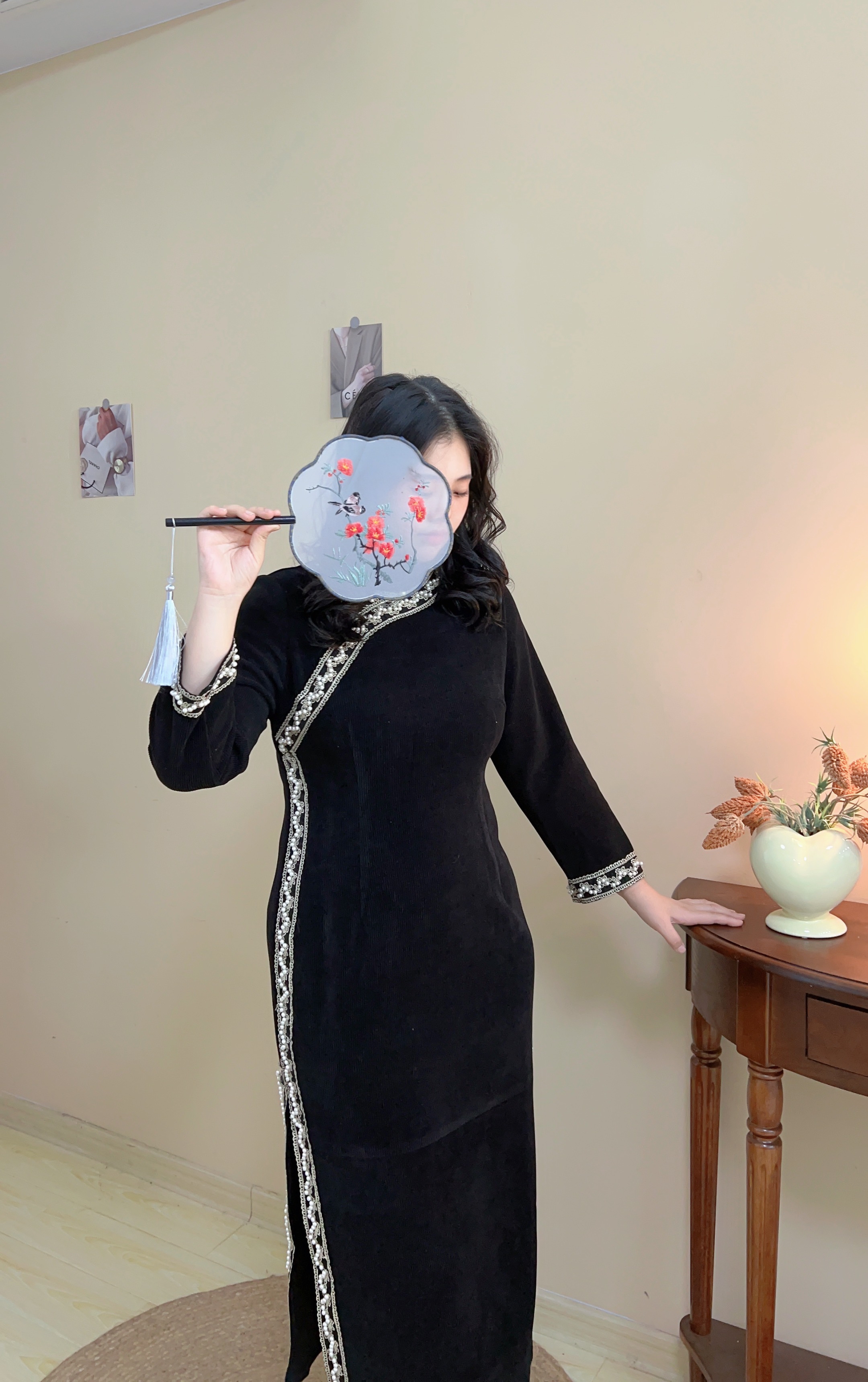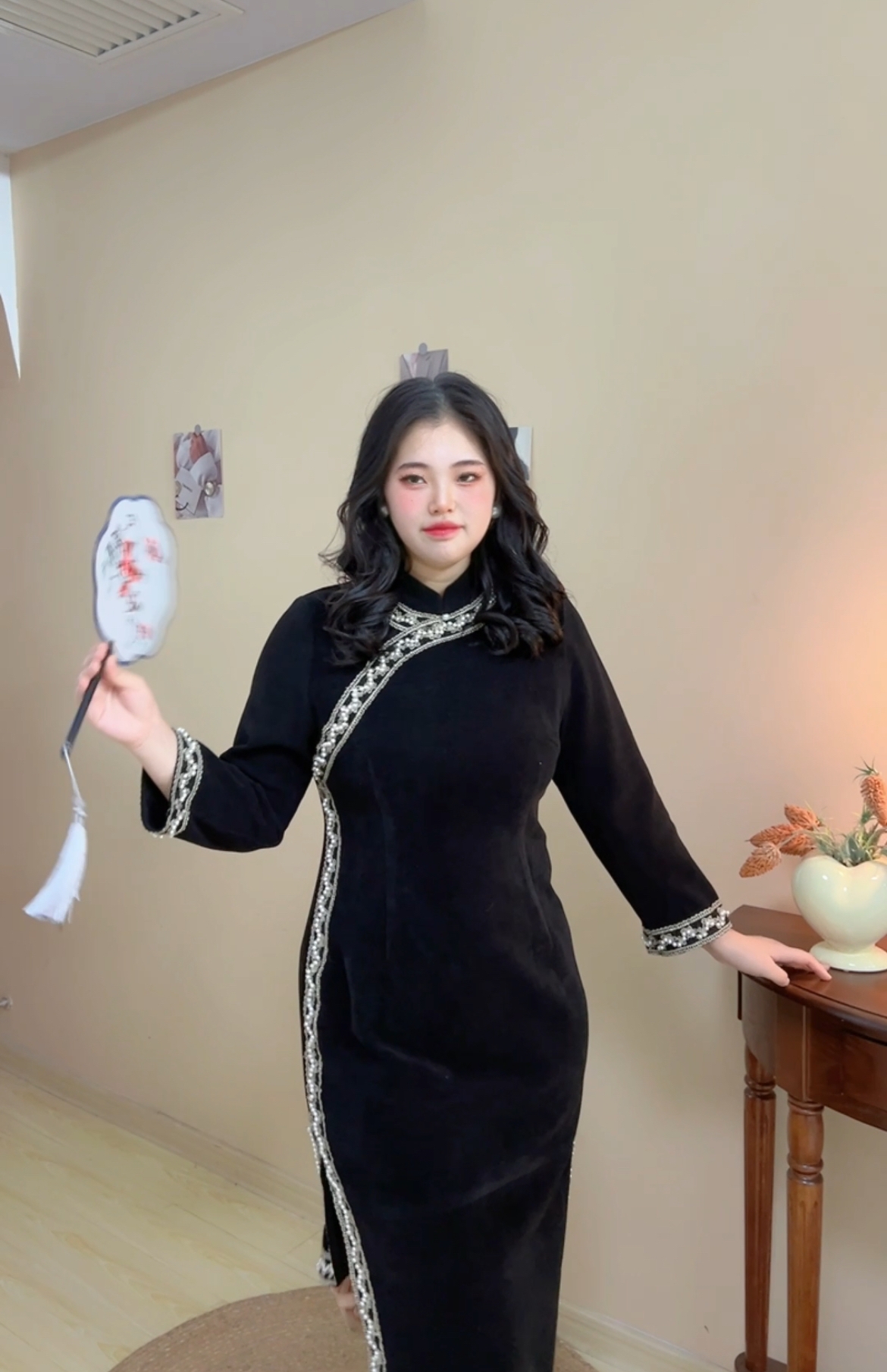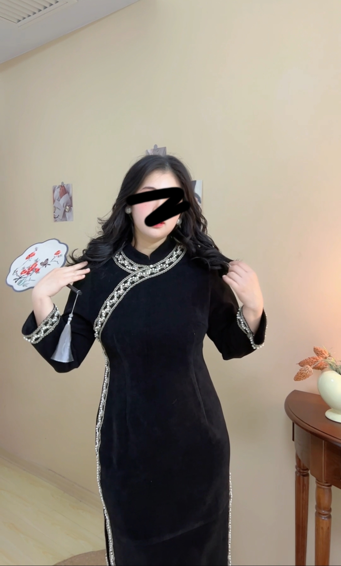 【自制款】遇见大码胖mm钉珠高级显瘦新中式改良版旗袍连衣裙冬季