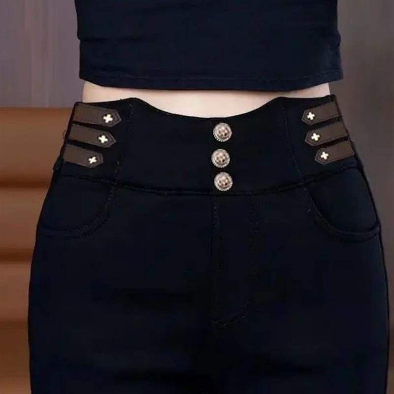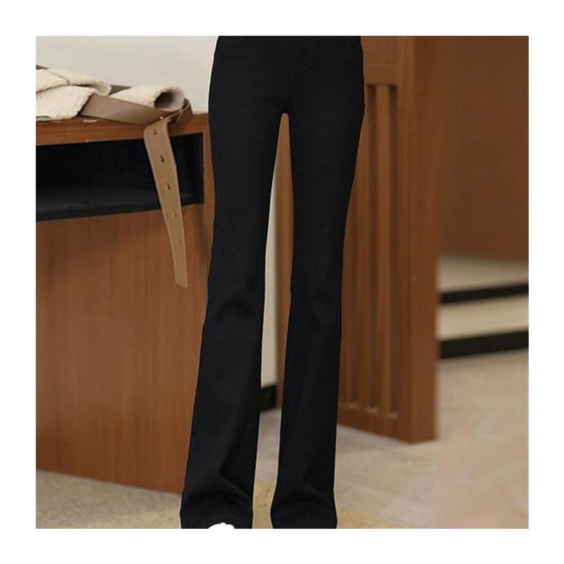 新款牛仔裤微喇叭子女新爆款秋季高腰显瘦百搭弹力小个子黑色长裤
