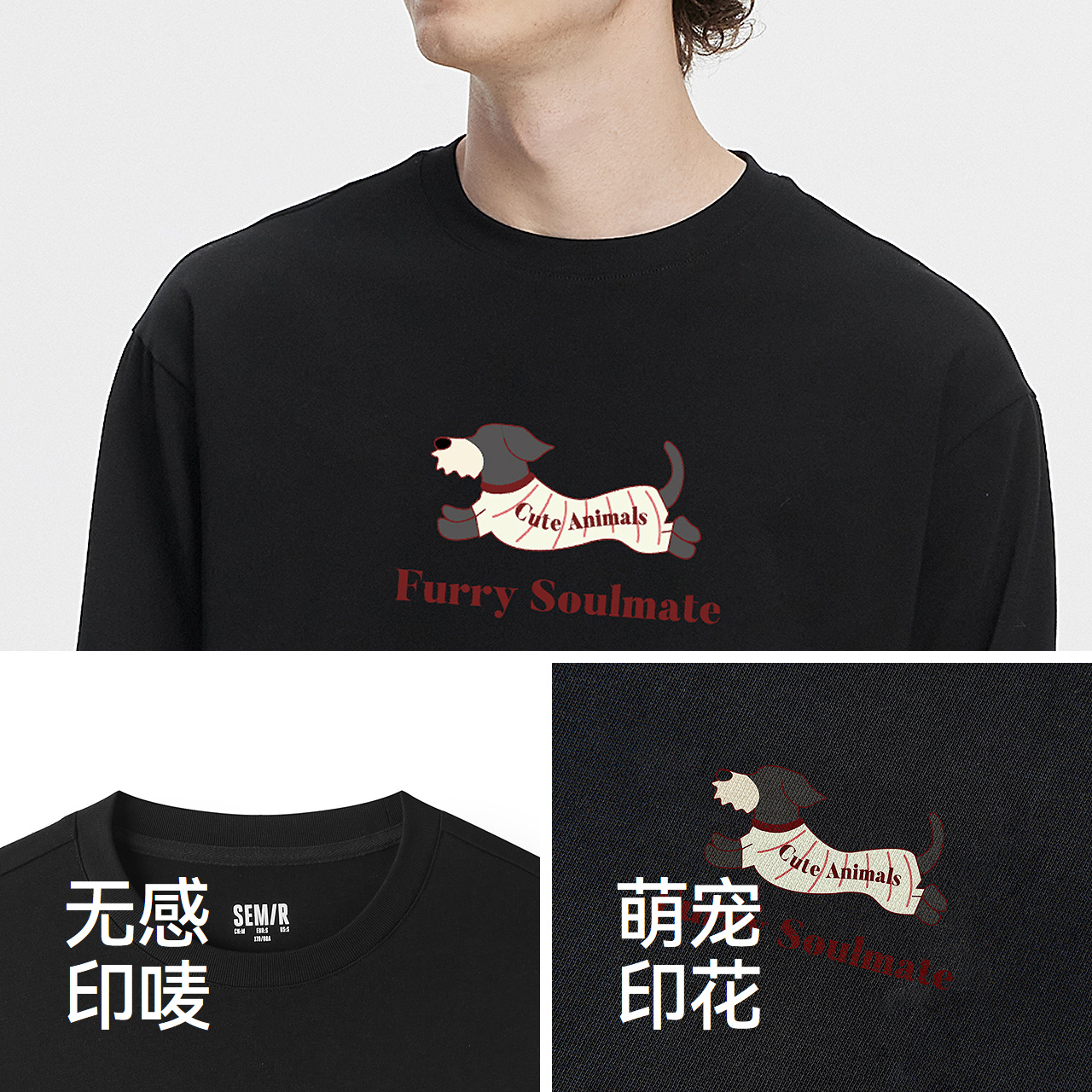 森马萌宠印花内搭情侣长袖T恤男