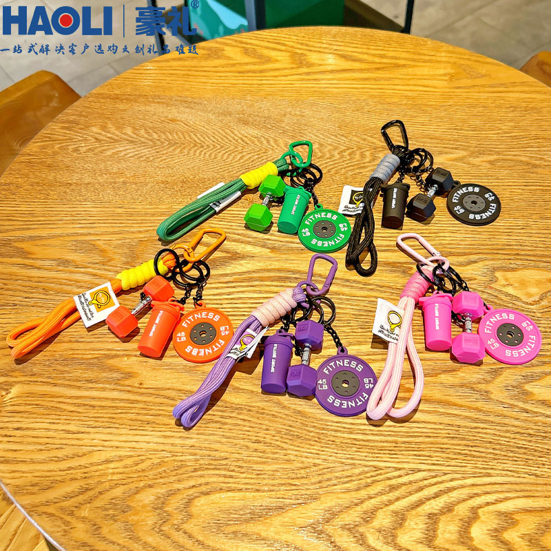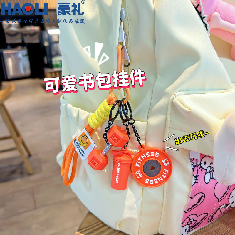 哑铃壶铃杠铃小挂件钥匙扣男女生潮酷包包挂饰健身房开业活动礼品
