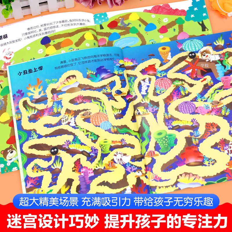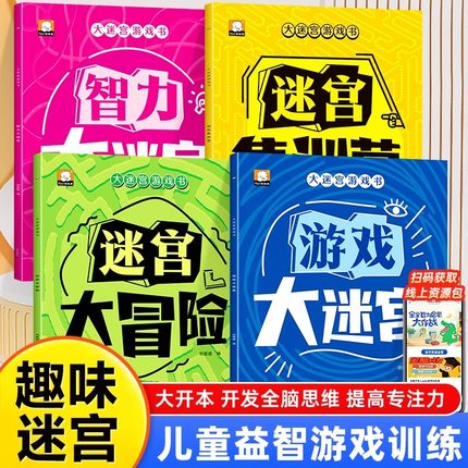 大迷宫游戏书迷宫训练书全套4册正版儿童专注力训练注意力思维逻辑训练书籍3到8岁智力左右脑潜能开发大冒险益智启蒙捉迷藏图画书