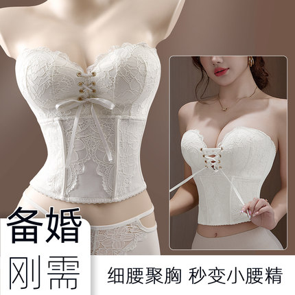收腹束腰无肩带内衣女小胸聚拢防滑上托无钢圈塑身隐形文胸婚礼服