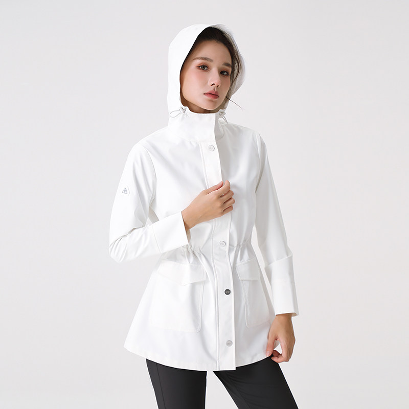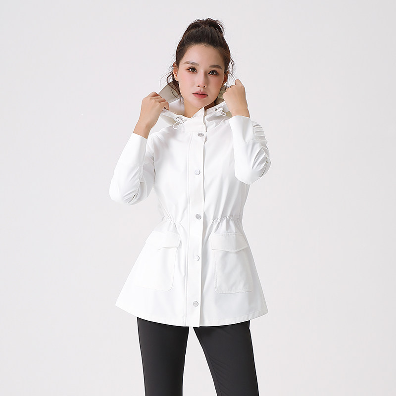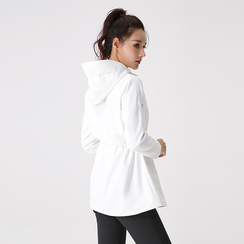 DEXGOLF高尔夫女装运动休闲外套中长款秋冬修身防风束腰连帽风衣