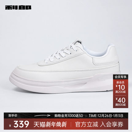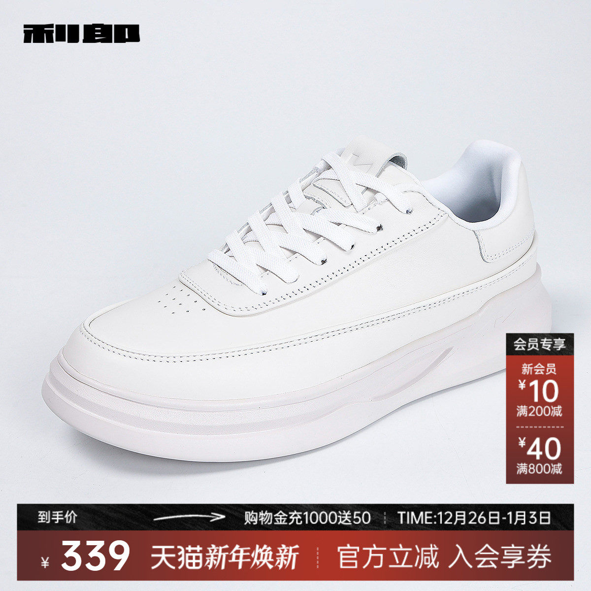 利郎官方 牛皮革休闲板鞋男士厚底拼接小白鞋2025秋季新款鞋子男