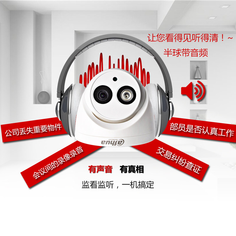 大华网络监控摄像头200万高清夜视半球摄像机H265室内家用1235C-A