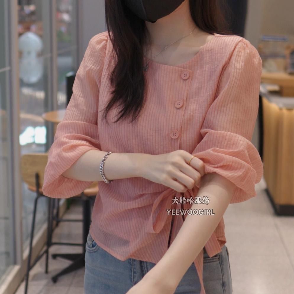 大码早秋法式条纹长袖衬衫女装2025年新款雪纺衬衣设计感收腰上衣