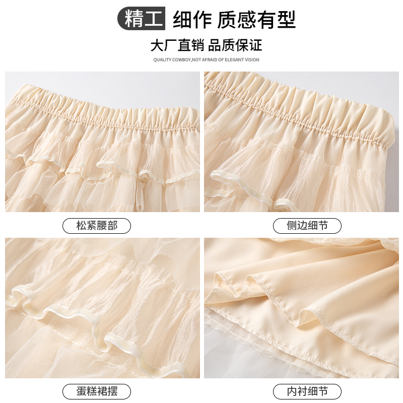 芭蕾风网纱蓬蓬蛋糕半身百褶裙