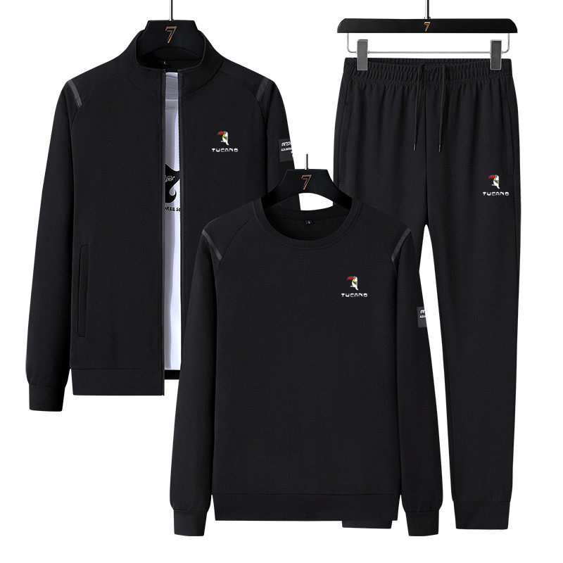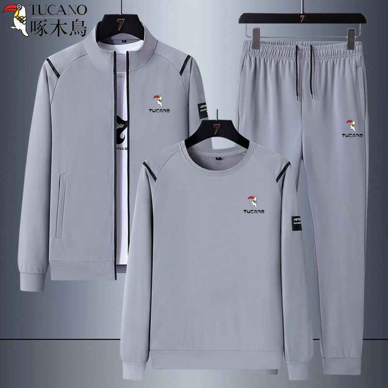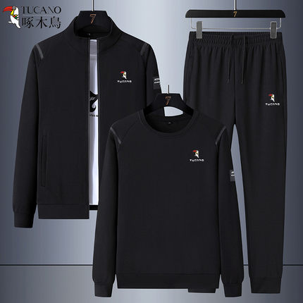 啄木鸟运动服套装男士秋冬季加绒休闲外套中老年卫衣三件套爸爸装