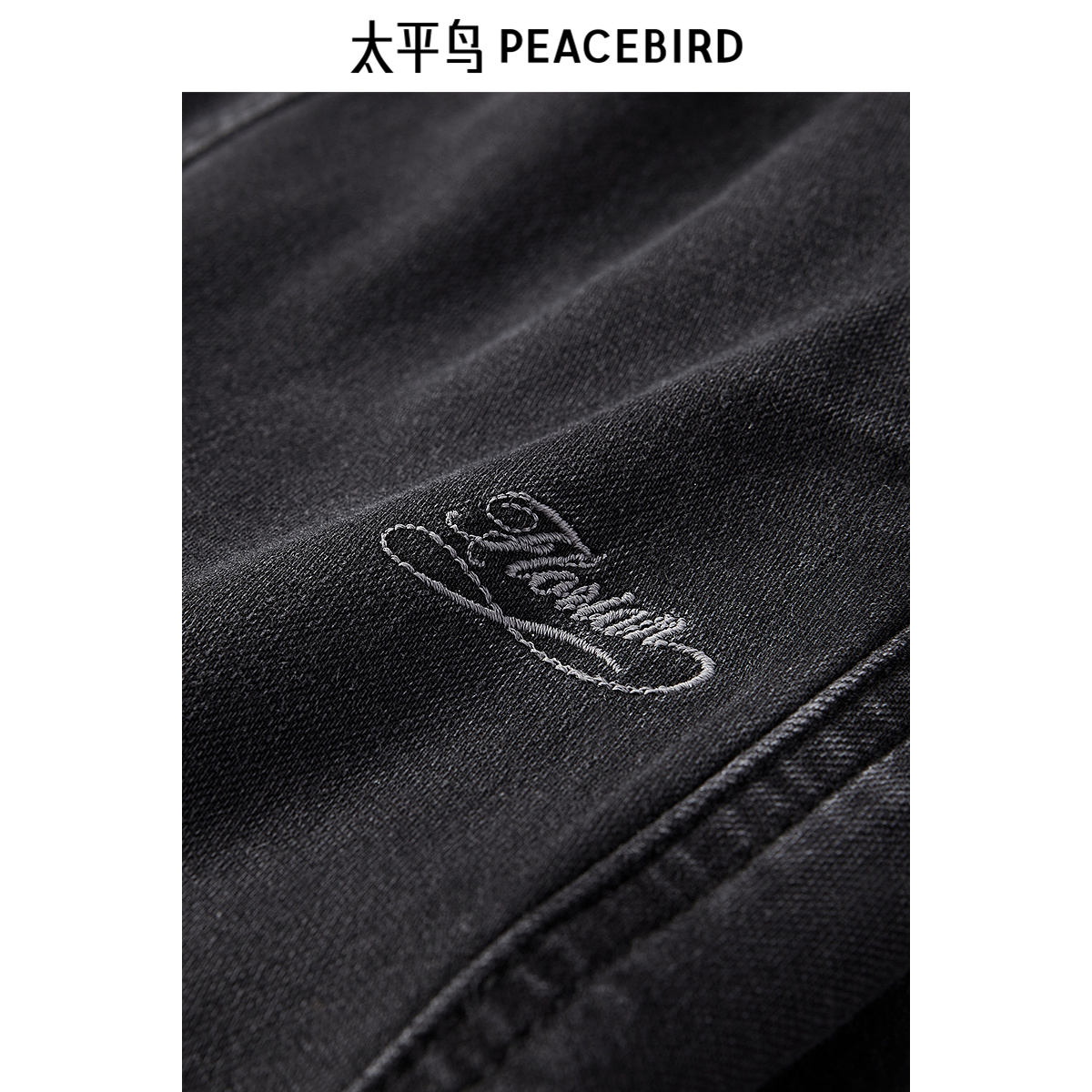 太平鸟男装休闲牛仔裤刺绣设计潮流水洗渐变色长裤抽绳宽松长裤