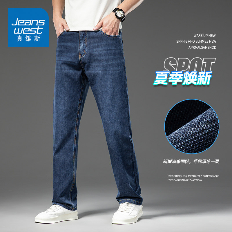 KZH真维斯高端牛仔裤男秋季新款宽松直筒裤中年爸爸商务休闲长裤