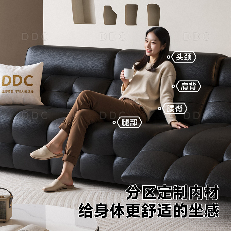 DDC高靠背劳伦斯电动多功能沙发意式轻奢零靠墙头层牛皮黑色沙发