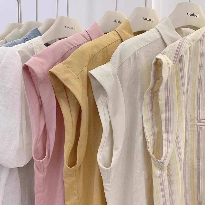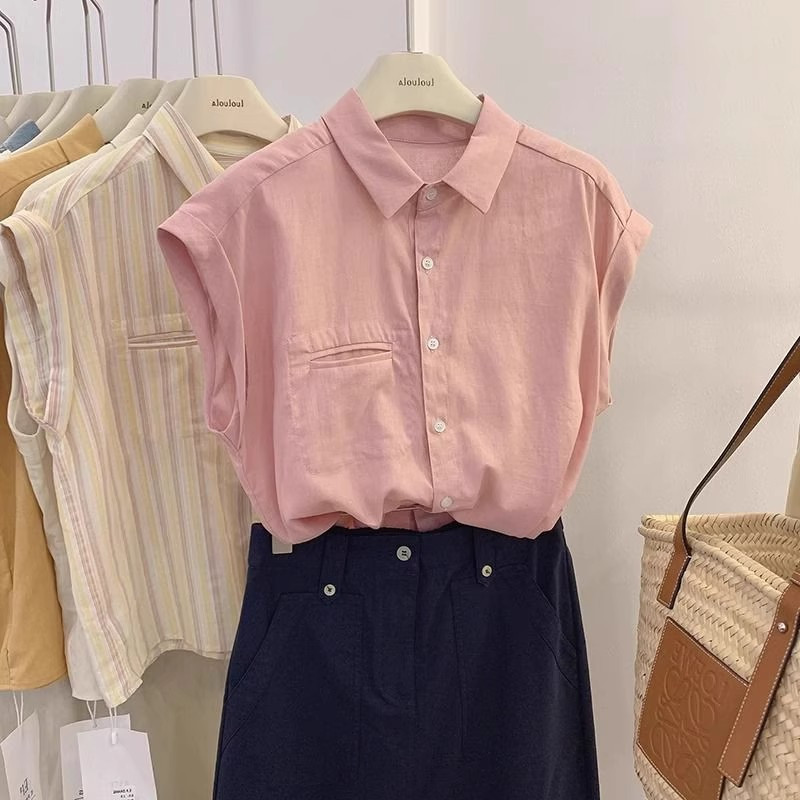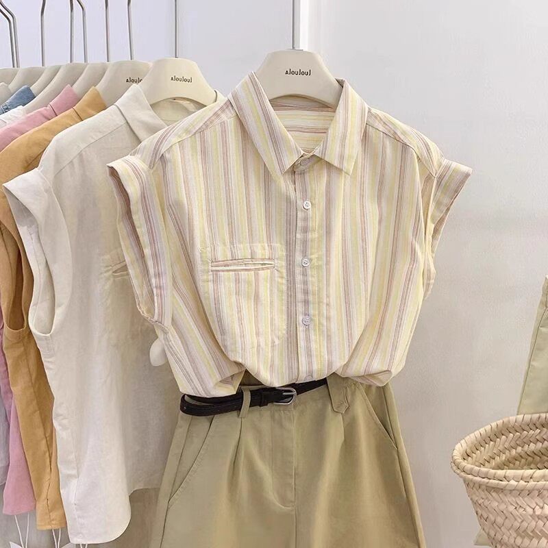 也太美了叭!黄色无袖衬衫女夏季薄款法式轻熟翻领小飞袖上衣ins