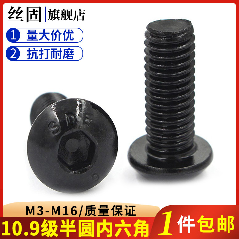 10.9级发黑半圆头内六角7380平圆头蘑菇头盘头螺栓螺钉M8M10M12